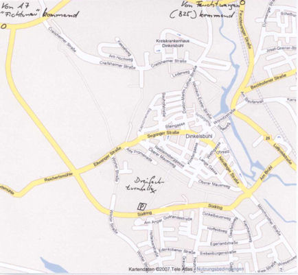 - von Feuchtwangen kommend: immer geradeaus der B25 entlang, bis Mc Donalds, dort rechts abbiegen. Über Kreisverkehr geradeaus, am Hallenbad vorbei. Ca. 300 m nach Hallenbad rechts auf Parkplatz zur Turnhalle (direkt nach Telefonzelle).